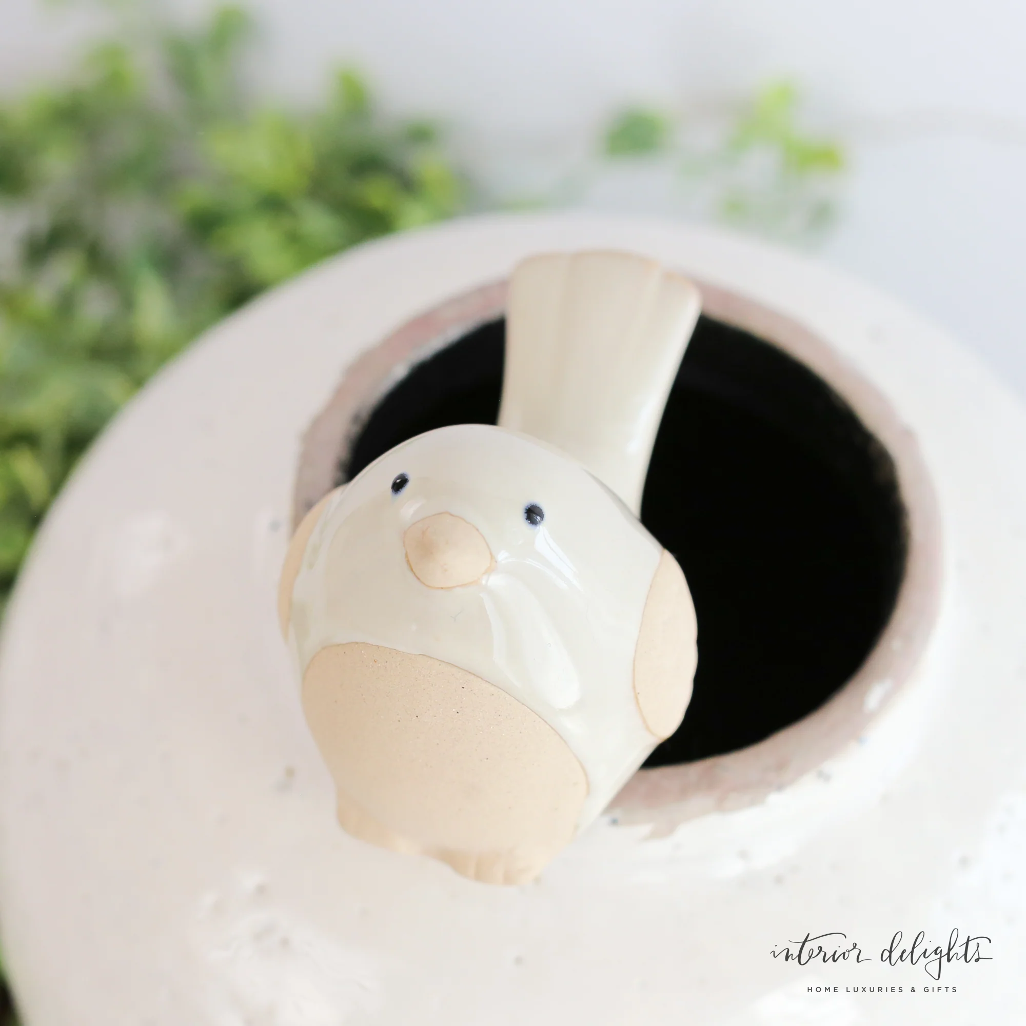 Our Bird Pot Perch Decoration adds a playful, whimsical touch to planters and vases. Crafted from durable ceramic, it easily sits on rims to bring charm to indoor plants, patios, or garden displays.