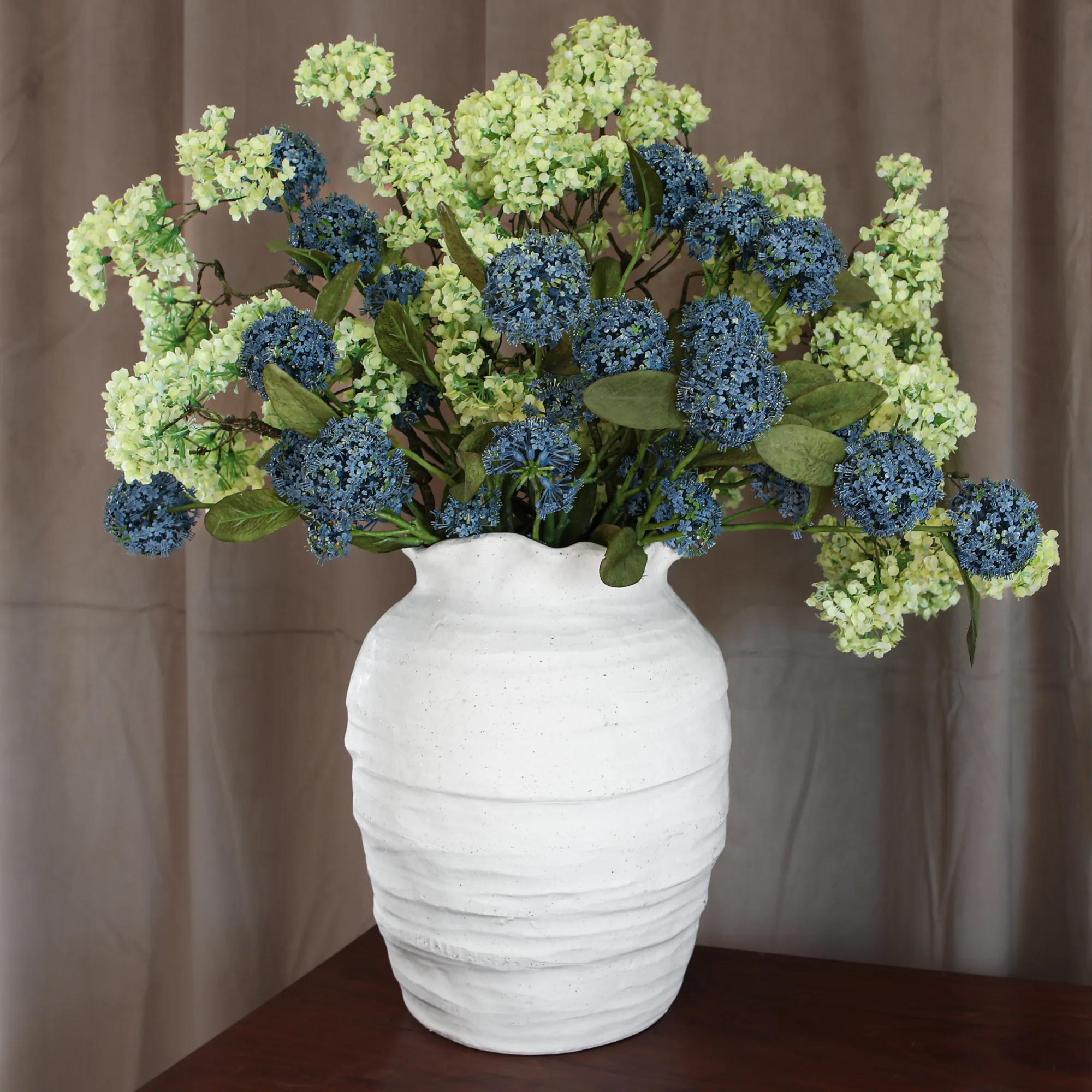 Our Ivory Scalloped Top Stoneware Vase brings delightful cottage charm with its soft ruffled rim and graceful organic silhouette.