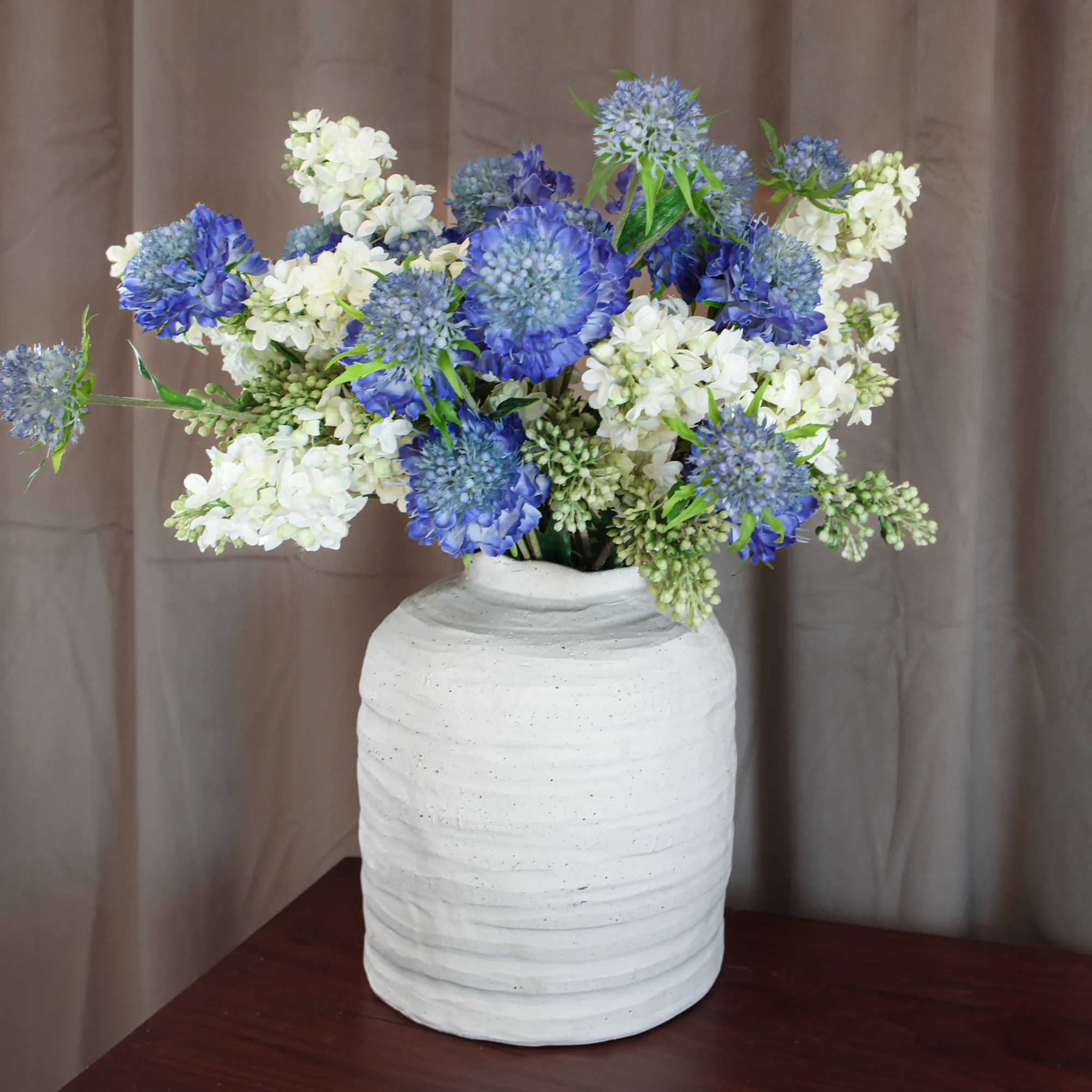 This Ivory Stoneware Vase adds quiet charm with its organic shape and softly white textured finish, perfect for a cozy, cottage-inspired space.