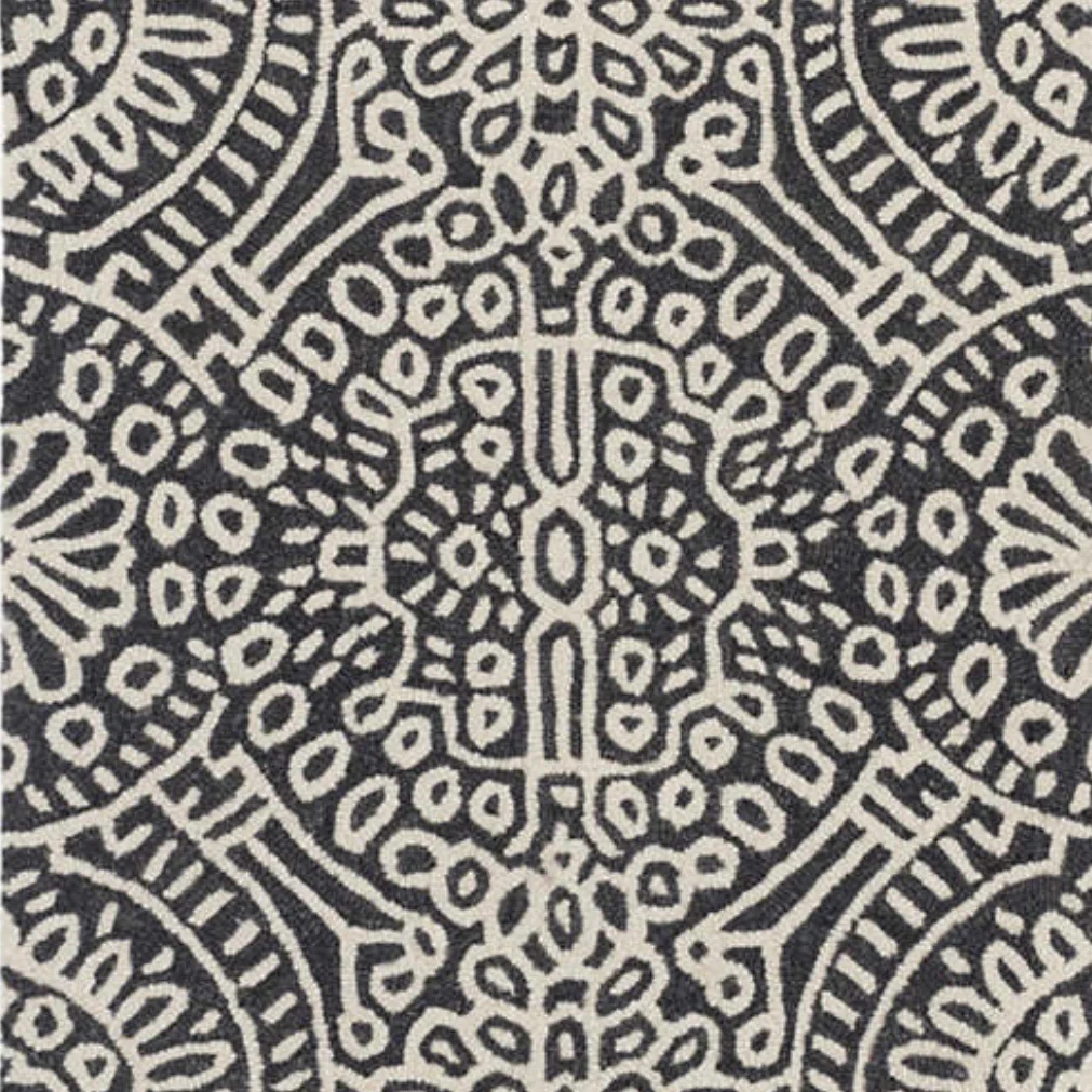HOW IT'S MADE: Three to four plies of smaller wool yarn are used in each hook and hand-guided through a canvas tracing pattern with a hooking gun. The small, tight hooks create a low-profile rug. Cotton canvas back, attached with latex. With this technique, the artisans are able to get very detailed with designs.